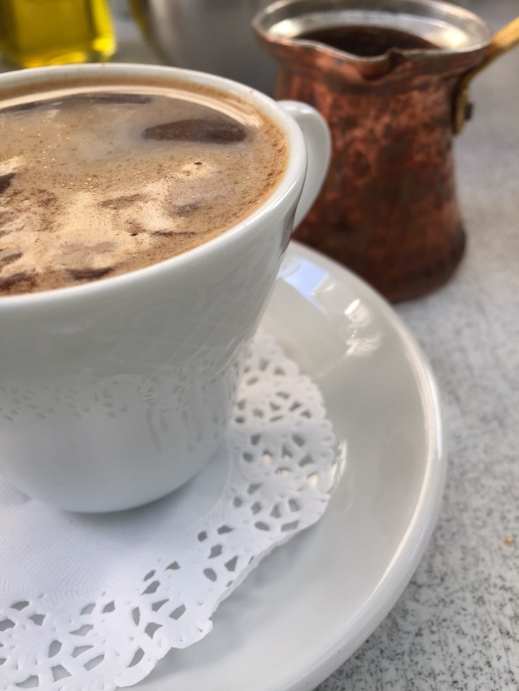 Αφού τακτοποιηθήκαμε ξεχυθήκαμε στα στενά δρομάκια της παραμυθένιας αυτής πόλης. Για αρχή φυσικά χρειαζόμασταν την απαραίτητη καφεΐνη να κυλήσει στο αίμα μας όποτε ένα café με θέα το Μπούρτζι ήταν ιδανική λύση. Τα σύννεφα είχαν αρχίσει να πυκνώνουν επικίνδυνα και μικρές καταιγίδες ξεκινούσαν και σταματούσαν κάθε είκοσι λεπτά.