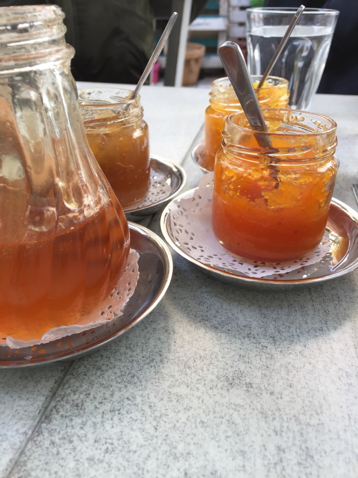 Το επόμενο πρωί ήταν ίσως το ωραιότερο πρωινό των τελευταίων μηνών! Αφού ξυπνήσαμε, και τα στομάχια μας έκαναν μικρές σεισμικες δονήσεις αποφασίσαμε να πάμε για πρωινό σε ένα μέρος βγαλμένο από παραμύθι με μια πρωταγωνίστρια μοναδική. Το όνομα του μαγαζιού ήταν “Kalimera” και πραγματικά αυτό το μέρος σε ενέπνεε για να είναι όντως καλή η μέρα που διανύεις. Ελληνικός καφές στη χόβολη, χειροποίητες μαρμελάδες (αχλάδι, καρότο – η αγαπημένη μου- και φυσικά πεντανόστιμο πορτοκάλι), φρεσκοψημένο ψωμάκι, καγιανάς από αυγά της περιοχής, πίτες φτιαγμένες καθημερινά με αγνά υλικά με τα χεράκια της χαμογελαστής ιδιοκτήτριας και φυσικά στο τέλος γιαούρτι (πηχτό και τόσο γευστικό) με μέλι και φρέσκα φρούτα. Και όλα αυτά πασπαλισμένα με αγάπη, μεράκι και κέφι της τόσο χαρούμενης και έξω καρδιάς ξανθιάς κυρίας που θέλεις να την αγκαλιάσεις και να της πεις ένα τεράστιο ευχαριστώ! Τι άλλο να ζητήσει ένας άνθρωπος;;; Μαγικό σκηνικό, νόστιμες πρωινές δημιουργίες και χαρά!